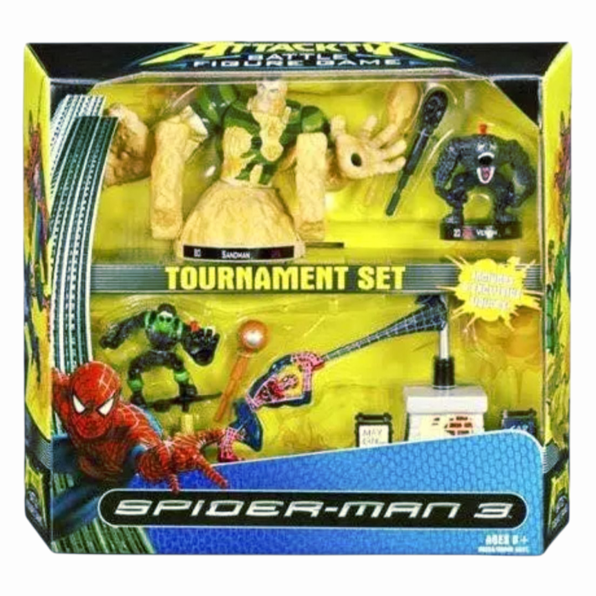 The "ATTACKTIX Battle figure game Spider Man 3 tournament Set" is an exclusive vintage toy set manufactured by Hasbro in 2006.