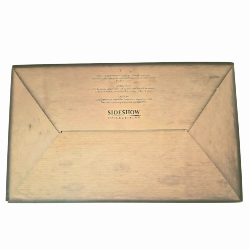 The statue was designed by Blizzard Cinematics and art-directed by Nick Carpenter, the Vice President of Art and Cinematic Development at Blizzard. It's made of durable materials like resin and plastic, with a realistic and detailed style.