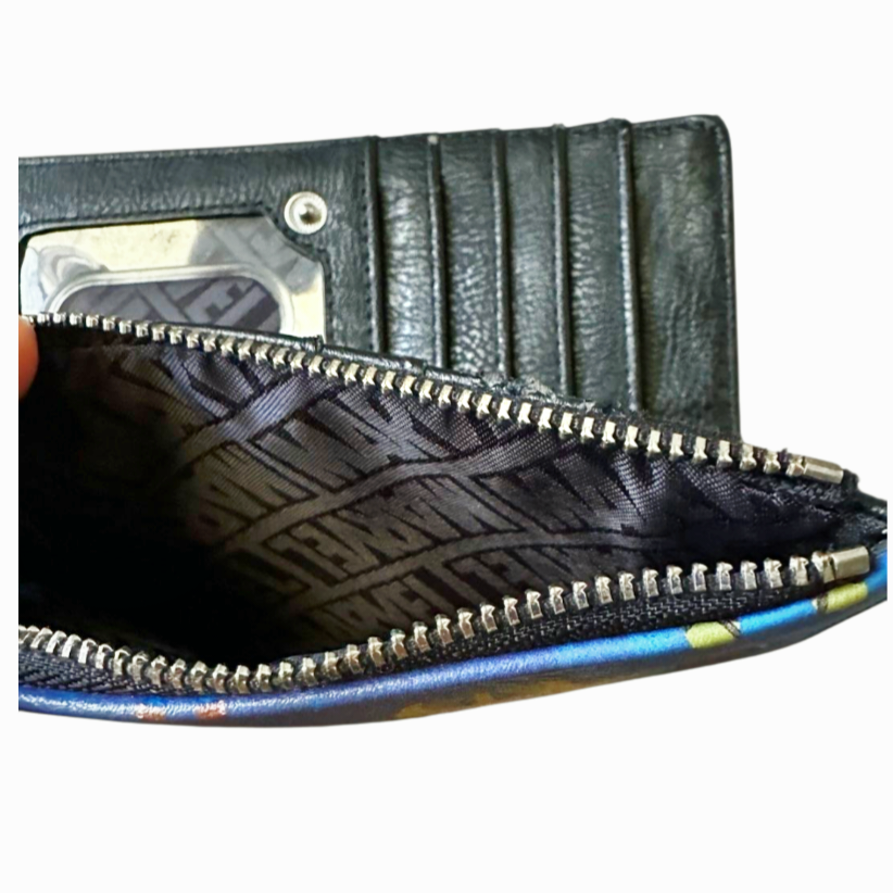 - The wallet is made of Saffiano faux leather with printed details of various Avengers characters in a "chibi" or "kawaii" style.