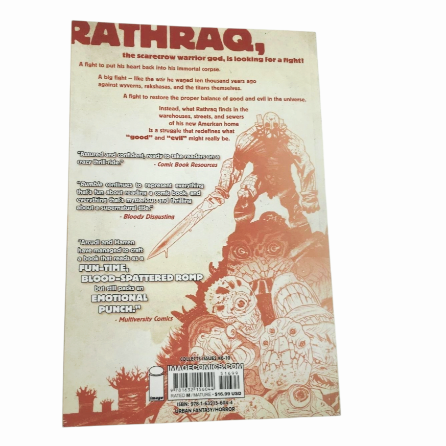 Premise: Rumble is described as a modern-day action/adventure fantasy thriller revolving around Rathraq, an ancient warrior god resurrected as a scarecrow in a modern American city. He embarks on a quest to reclaim his true form, leading to encounters with various monsters and drawing in ordinary humans like bartender Bobby LaRosa.