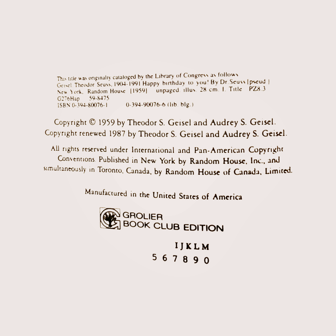Vintage *Dr. Seuss "Happy Birthday To You!" Hardcover Book